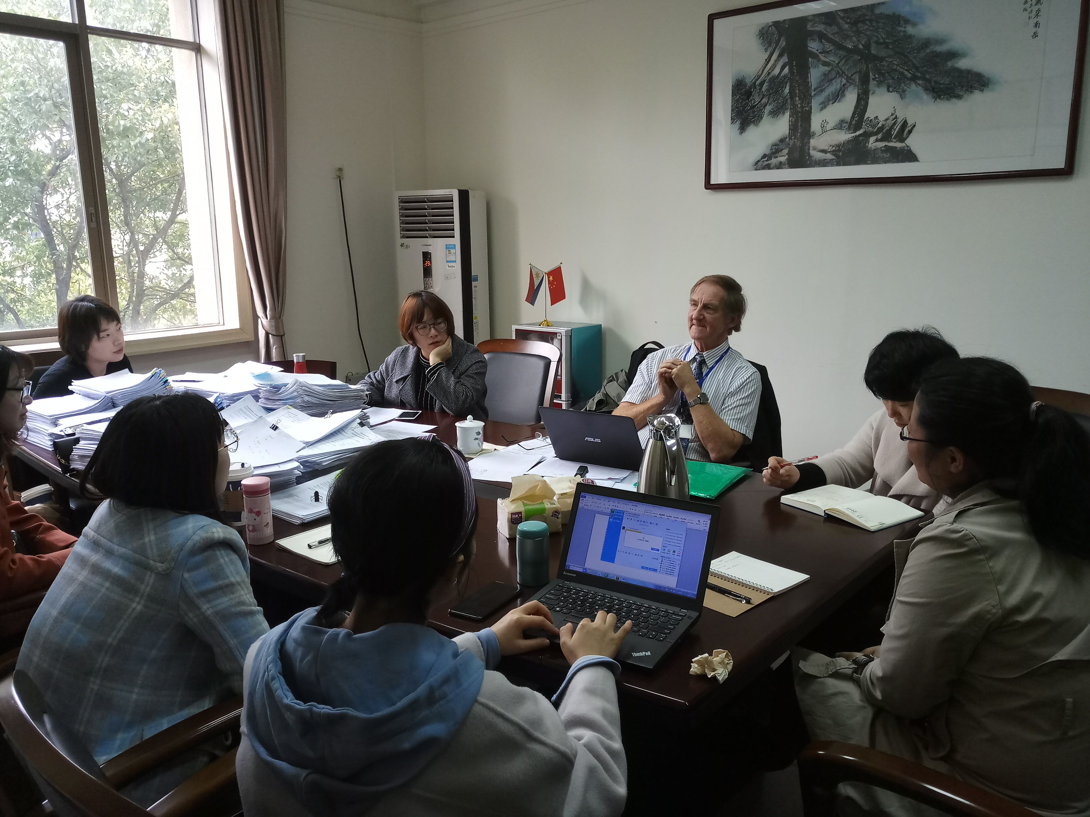 外审专家查阅了教学材料、课业资料、教研活动及内审会议记录、内审常规文件,并与学院邓天文院长、管理人员、专业教师、内审员在项目管理、课堂教学、学生测评等方面展开了交流,参观了学院教学机房、语音室,就学院HND项目管理团队、教学设施、资源管理、教师资历、学生管理、内审系统等方面进行了全面审查和评估。专家充分肯定了学院课程教师的专业素质和团队协作精神,对学院学生的专业素养、英语水平给予了高度评价。