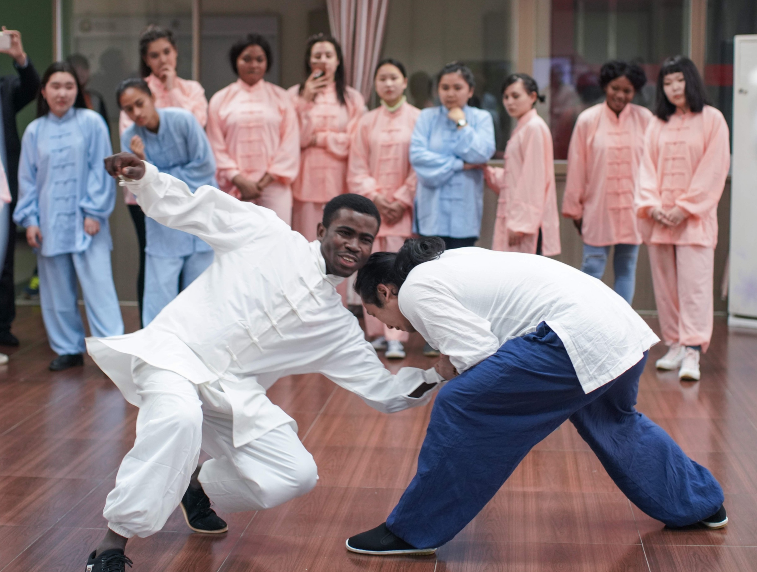 活动结束后,许多留学生仍在兴致勃勃地模仿涂远见教授过的招式,与同学相互切磋武艺。一位留学生激动说:“这活动太棒了,我很高兴能这么近距离地欣赏武术表演。回国后。我要告诉我的朋友,在中国,除了成功,还有很多别的武术大师。” (图/文 曾玉)
