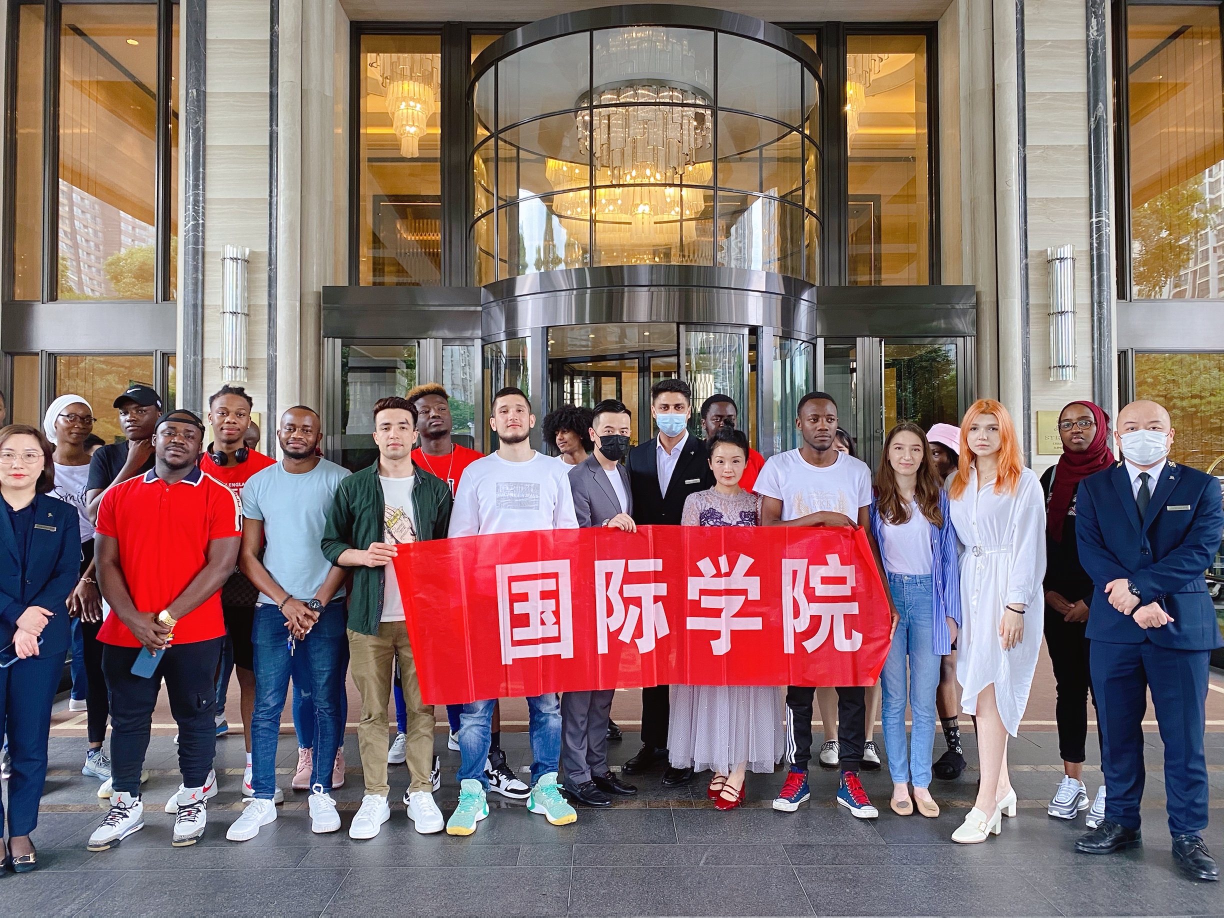 5月11日下午,我院2019级以及2020级国际经济与贸易专业的留学生在童晶、杨蔚两位老师的带领下前往瑞吉酒店进行专业认知实习。