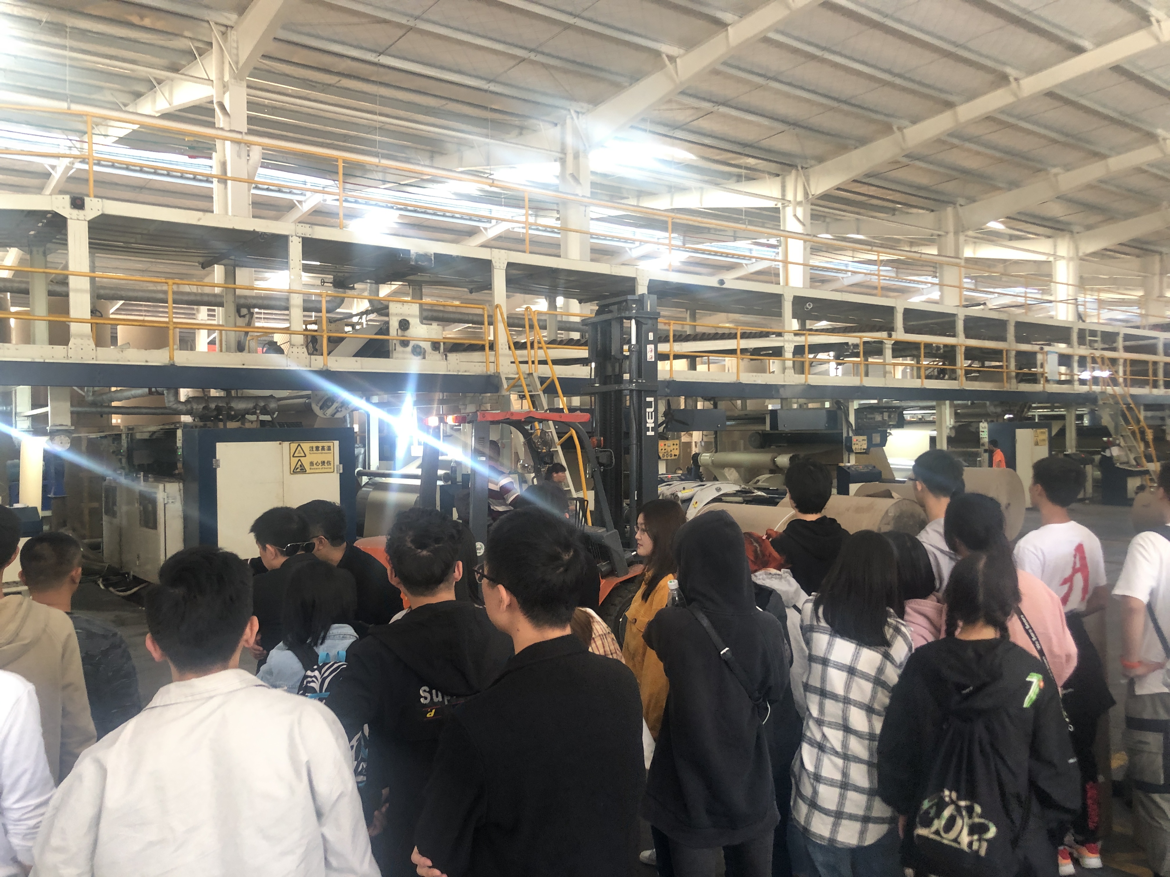 同学们近距离接触了该公司的生产车间,参观恒信包装企业的废料处理方式,了解两条生产线的生产资源配置情况、车辆调度计划,学习该生产车间管理的具体模式。在参观过程中,同学们积极向公司负责人谢总提问,如目前恒信包装企业产品的出口贸易、仓储管理等情况,谢总详细地解答这些问题。参观完生产车间后,谢总还向同学们介绍了公司产品目前的分销状况以及该企业的未来布局愿景。