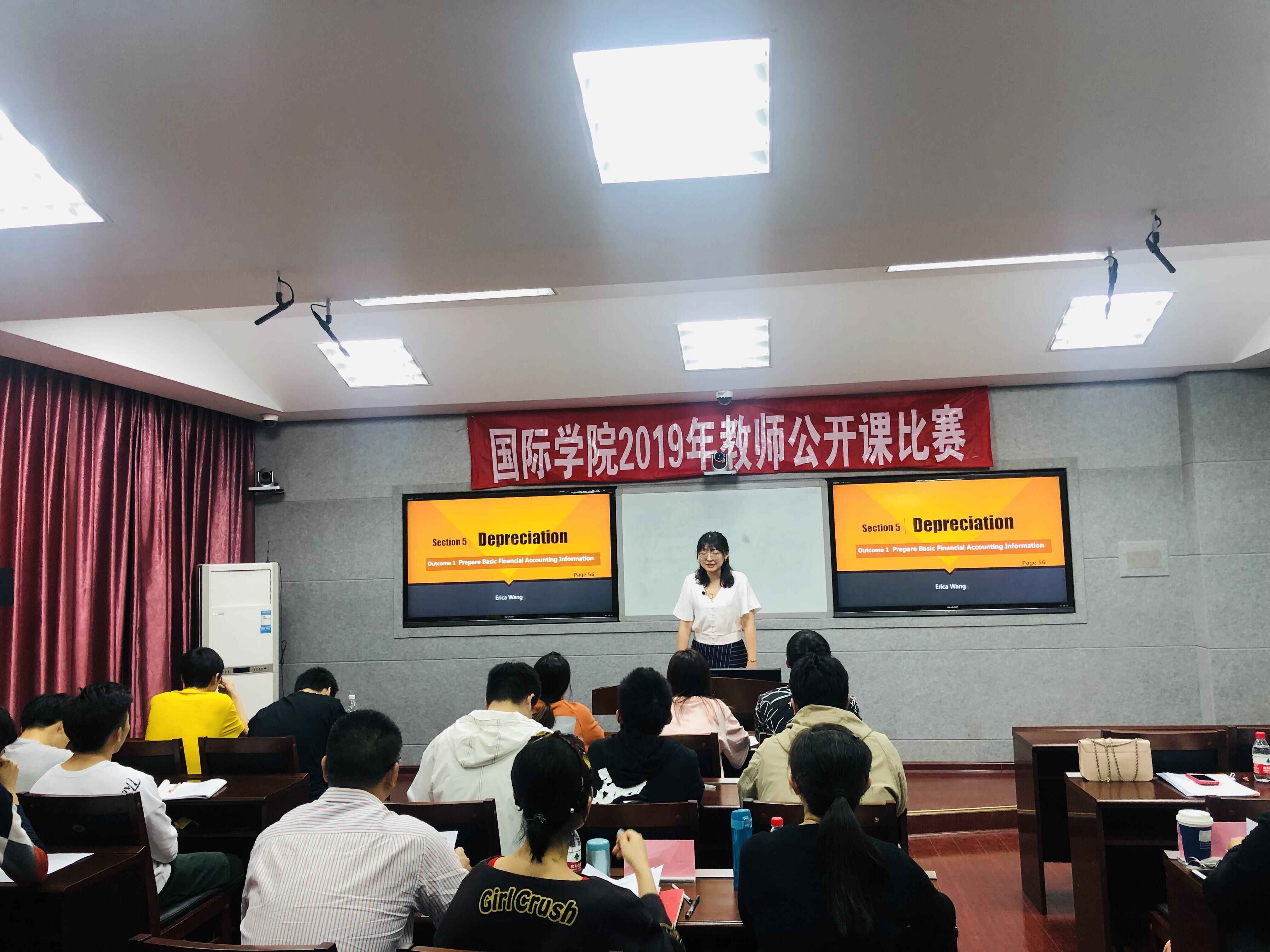 我院于5月21日下午3点在德润楼603教室举办2019年国际学院教师公开课比赛。院长邓天文、国际经济与贸易专业负责人彭一峰、国际经济系主任童晶、国际商务与工程管理系主任王晶、国际汉语系主任谢丽担任评委,学院全体教师现场参与听课与评课。比赛全程进行录播。