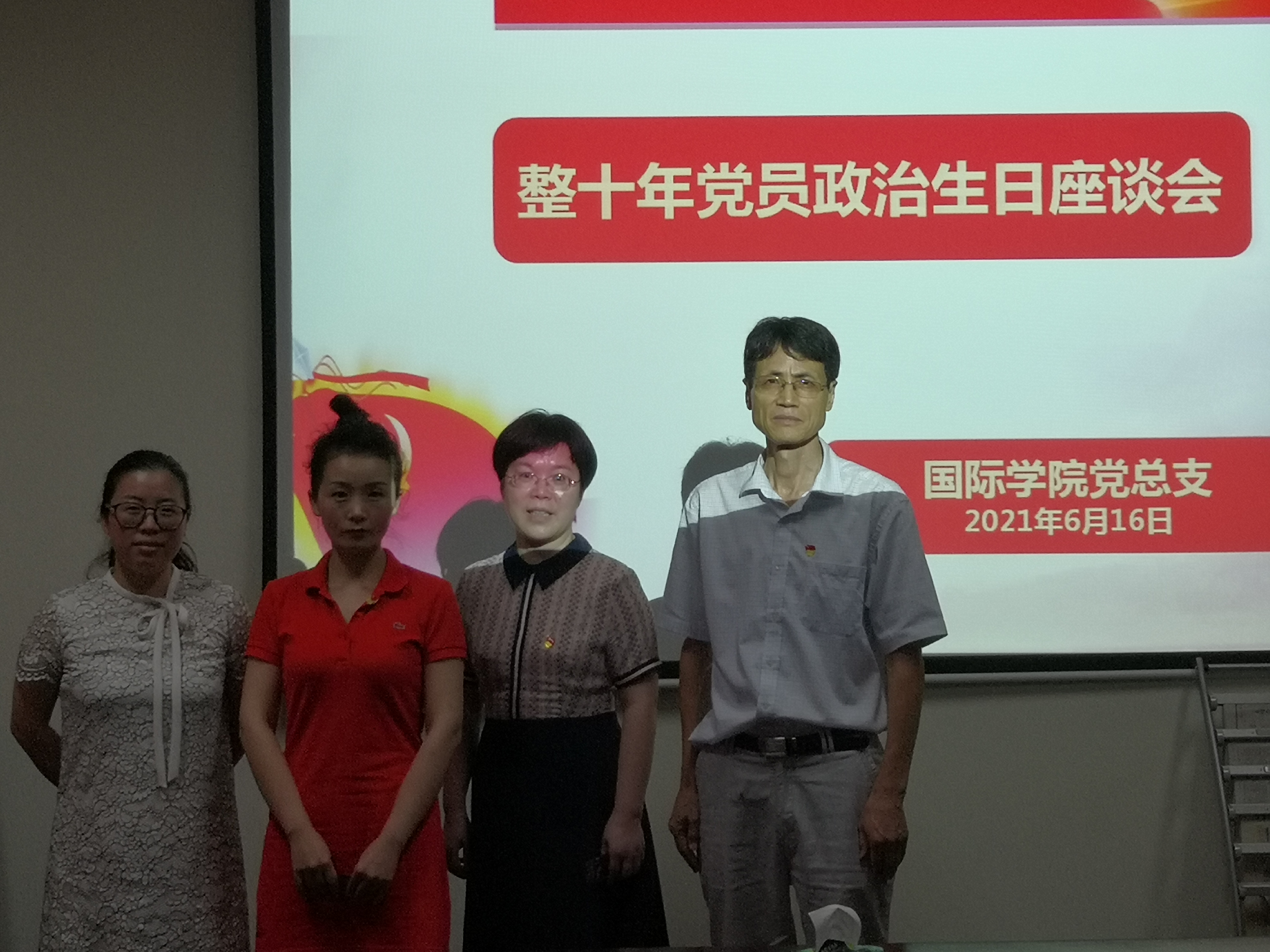 首先,李志带领张敬、童晶、汤炎等三名党龄为整十年的同志重温入党誓词。接着,上述三名党员先后分享了各自入党历史以及建党一百周年感言。然后,全体党员教职工围绕建党一百周年的辉煌历程进行交流互动,就学院建设发展建言献策。最后,李志向今年整十年的三名党员赠送了政治生日读书卡,并勉励全体教职工党员要不断增强“四个意识”,坚定“四个自信”,做到“两个维护”,增强跨文化交际意识,做好来华留学生中国国情教育,讲好中国故事,为培养更多知华、友华、爱华的国际人士贡献力量。