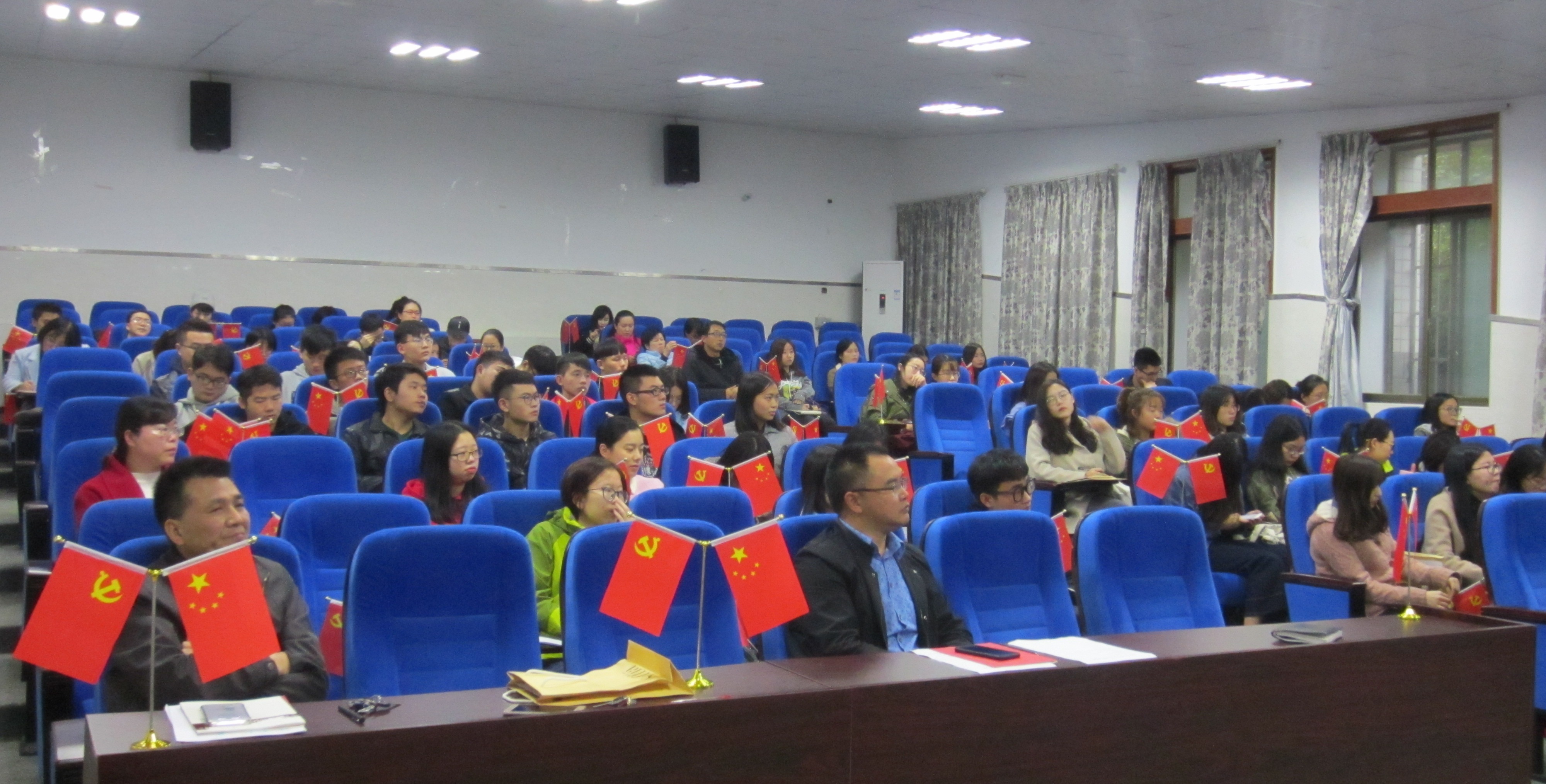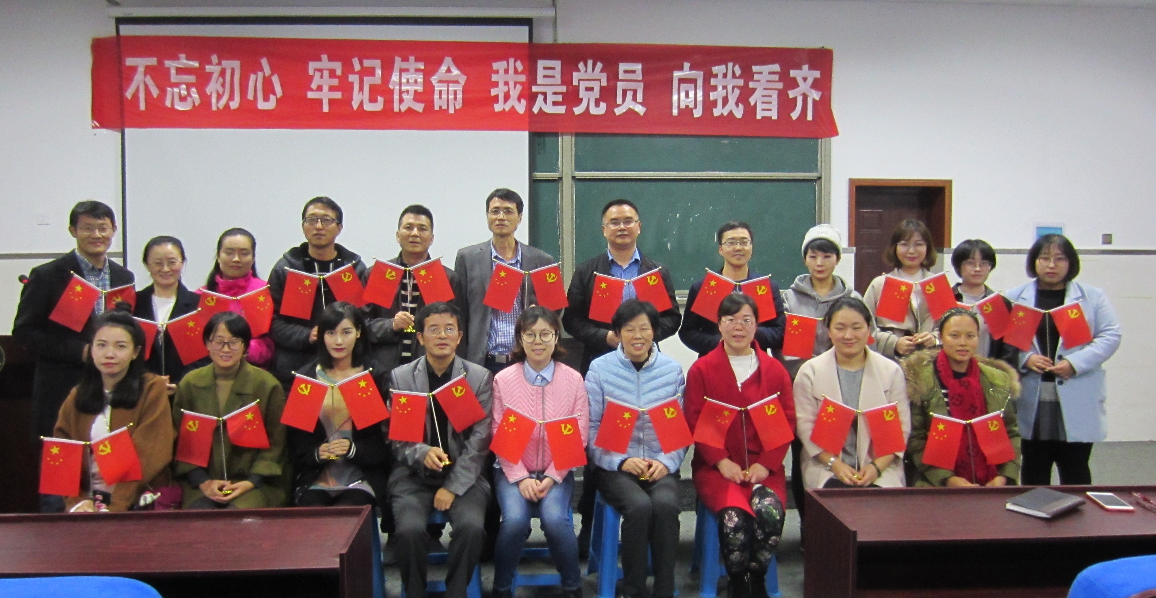11月13日下午,我院党总支在国际楼115报告厅举行“不忘初心,牢记使命,我是党员,向我看齐”主题党日活动。学院全体师生党员秉持党旗国旗参加会议。总支委员、学院院长邓天文主持活动。