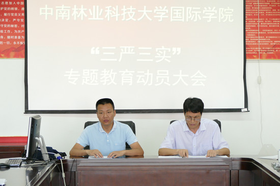 陈幸福副书记传达了学校党委“三严三实”专题教育工作的方案。李志书记为全体党员上了《忠诚干净担当,共话学院发展》“三严三实”专题教育活动的党课。李书记结合党的十八届四中全会和习近平总书记系列重要讲话精神,就“三严三实”教育实践活动的主要内容及相关要求进行了细致解读,并结合国际学院工作实际部署了学习教育活动的工作,明确了学院各项工作的整改和努力方向。王志文强调,通过“三严三实”专题学习,每位教职工应该立足本职工作,进一步提高个人综合素质和专业能力,做好我校的国际教育工作,共同推进国际学院的发展。
