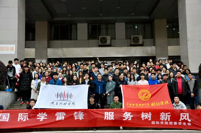 3月16日中午,由国际学院和风景园林学院团委学生会组织的一场以“吹响青春集结号,做新时代的雷锋”为主题的学雷锋活动在国际楼前坪开启。