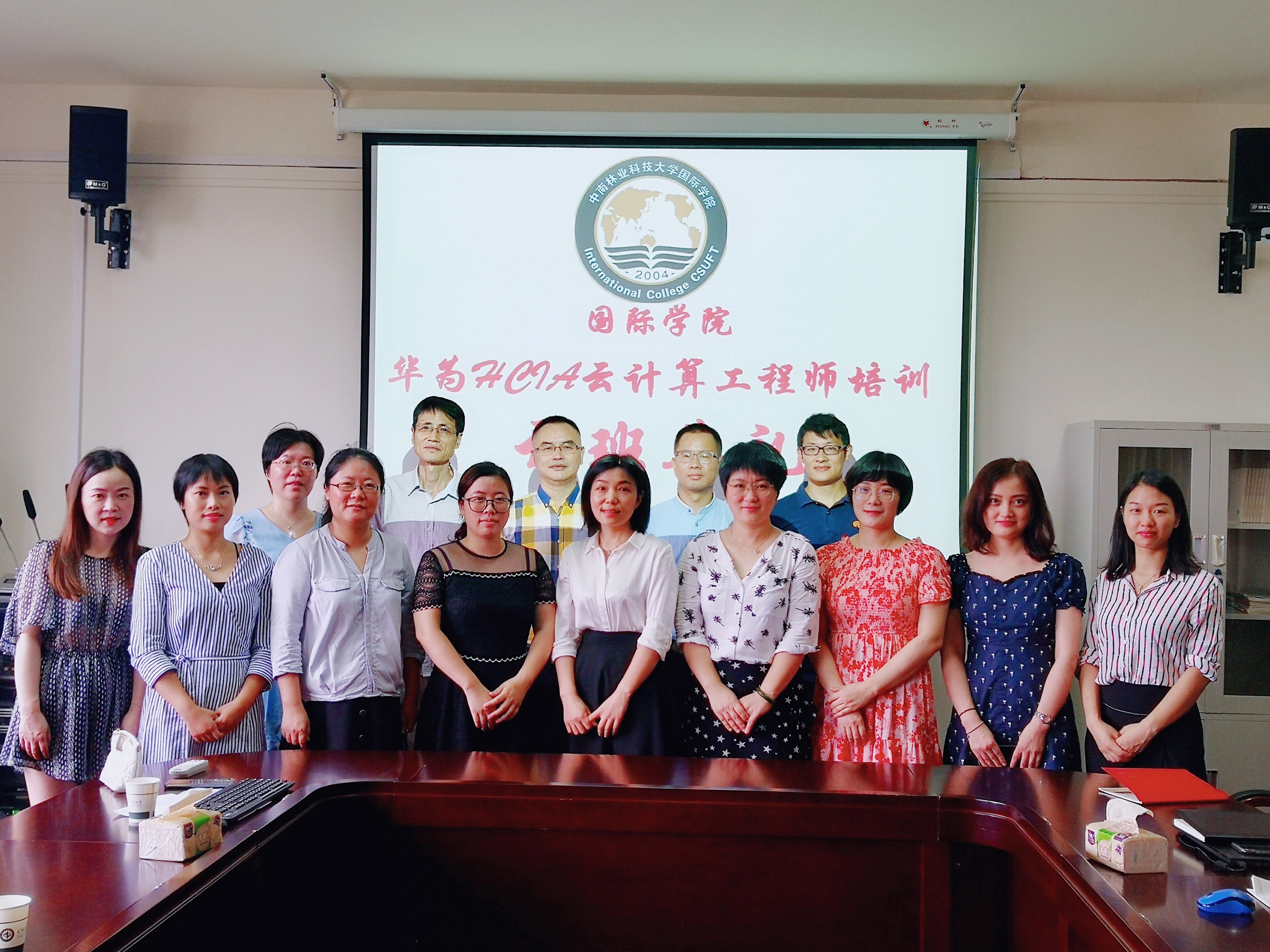 7月6日,我院华为HCIA云计算工程师培训班在国际学院致远楼603正式开课,长沙今朝信息技术公司校企合作项目经理谢祖星、云计算专家戴香玉和国际学院党委书记李志、院长邓天文、副院长张敬出席了开课仪式。