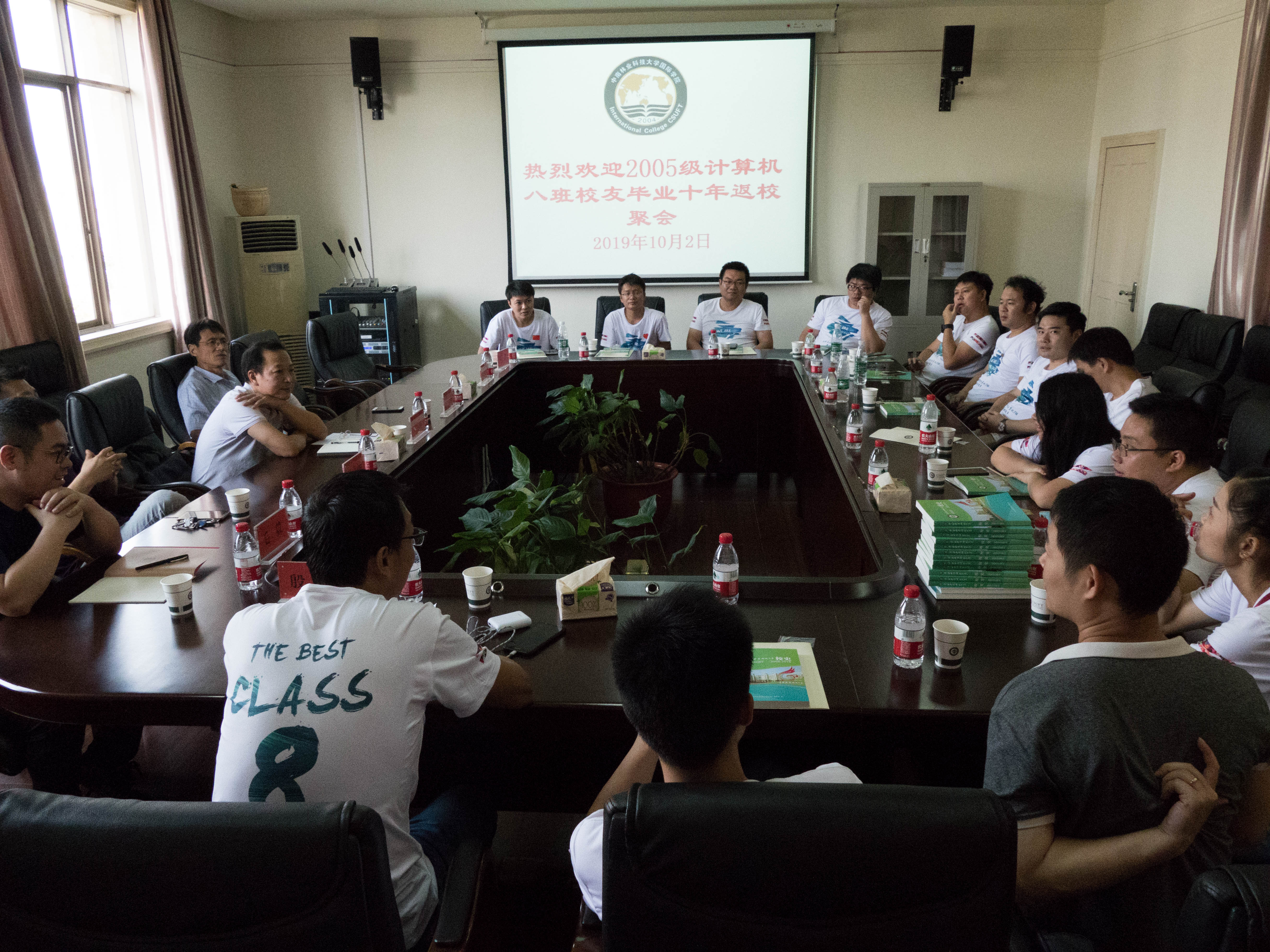 2019年10月2日下午两点,在致远楼603,召开我院2005极计算机科学与技术8班校友座谈会。出席座谈的有学校校友办主任张仕吉、国际学院党总支书记李志、党总支副书记陈幸福 、时任辅导员和老师王才喜、毛毅、殷越、熊良文、王晶。