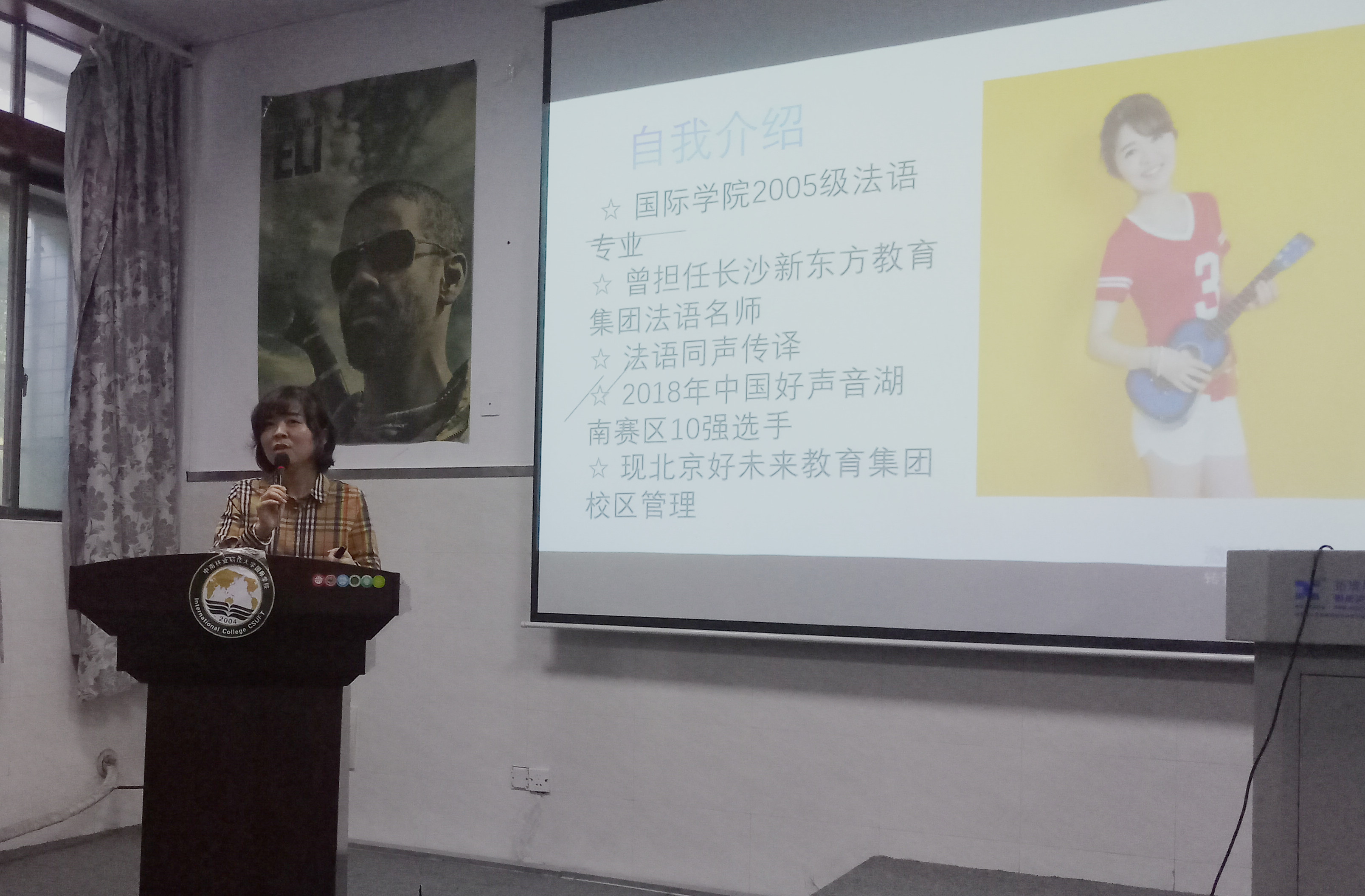 此次受邀做客校友讲坛的嘉宾为我院2009届法语专业校友袁静和2016届国际经济与贸易专业校友刘杰。他们分别从“职业规划、自我成长”和“大众创业、万众创新”的维度和近百名校友和在校生分享了各自经历和经验。
