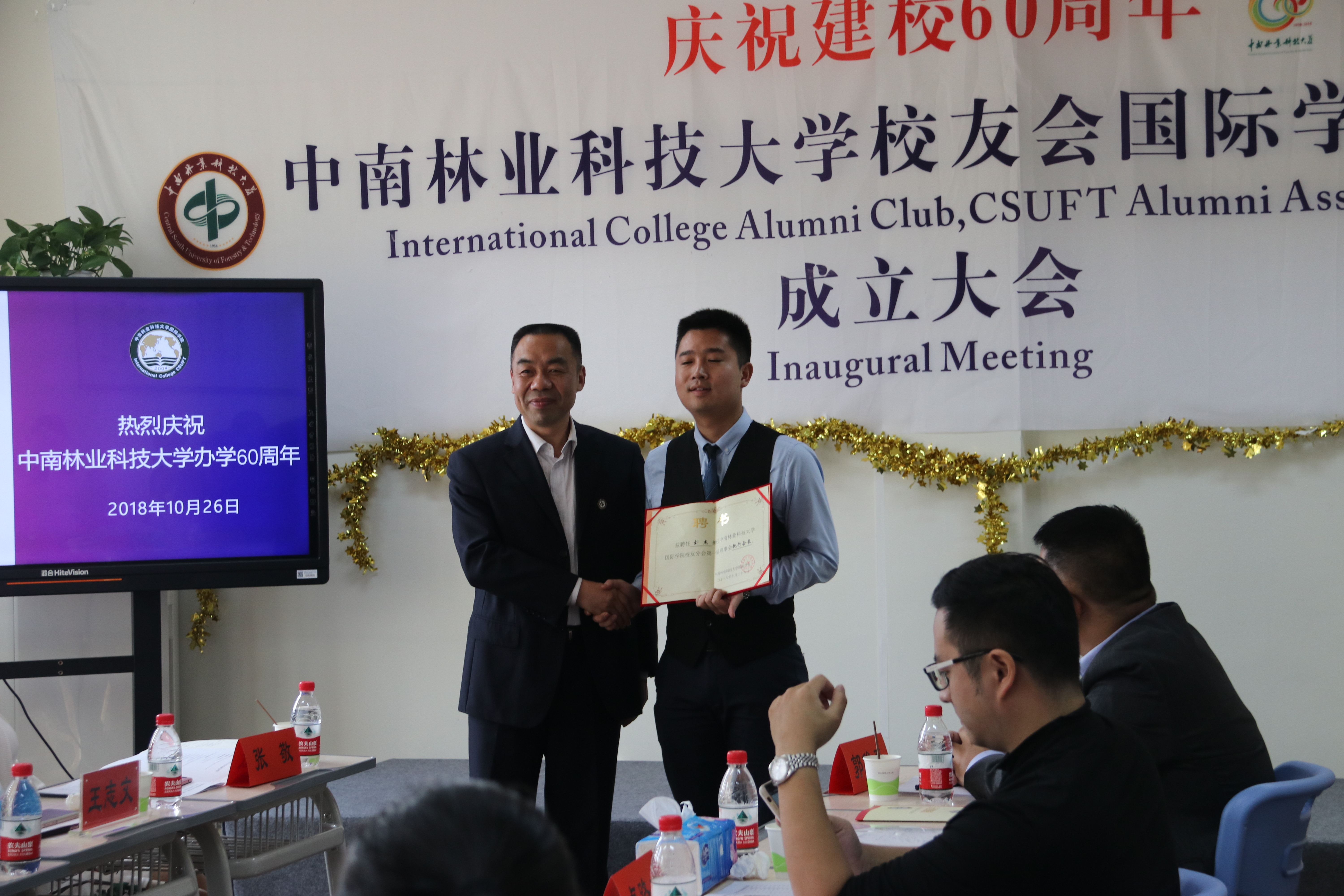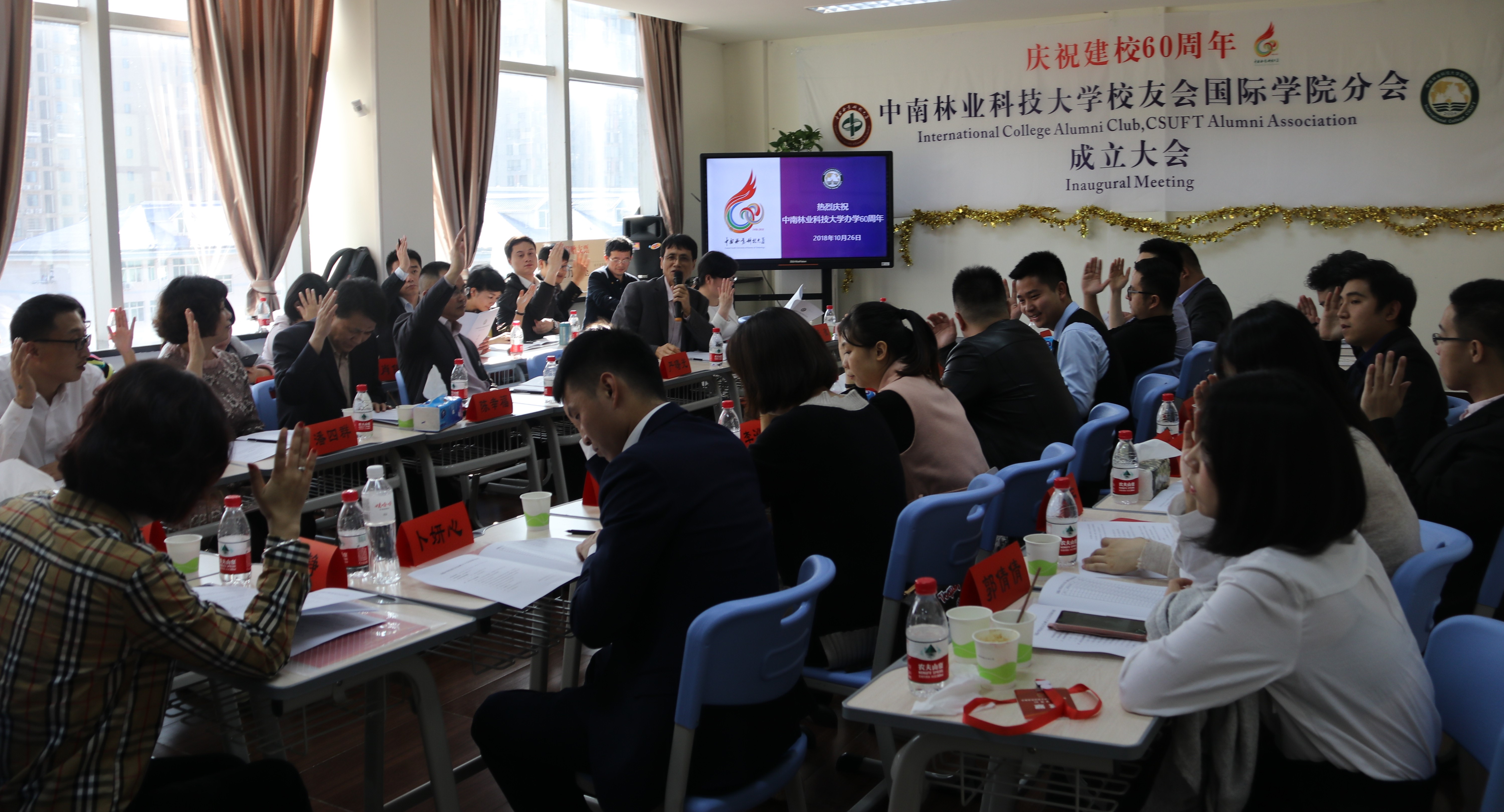 10月26日下午,中南林业科技大学校友会国际学院校友分会成立大会在致远楼612室隆重举行,会议由学院党总支书记李志主持。学校副校长严曙光教授到会宣读学校批复并授牌,学院院长邓天文及班子其他成员、国际学院前任院长王志文、学院教职工代表以及来自全国各地的30多名校友代表参加了成立大会。